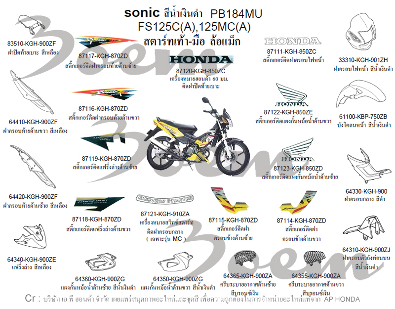 บังโคลนหน้า | SONIC 2000 Yellow FS125, M | 273.00 |