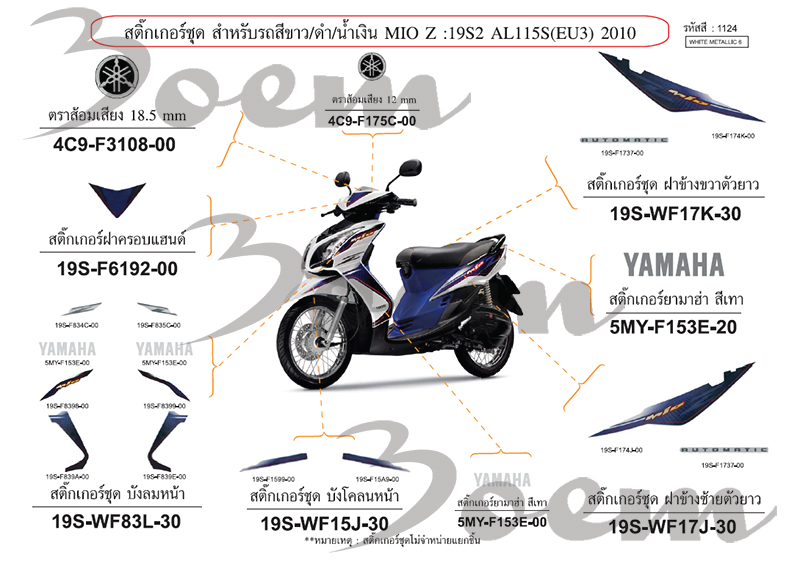 5MY-F153E-00 X2 ตรา YAMAHA บังลมหน้า (ใช้ 2 ชิ้น) MIO Z '10 19S2 White-Black-Blue 23.00